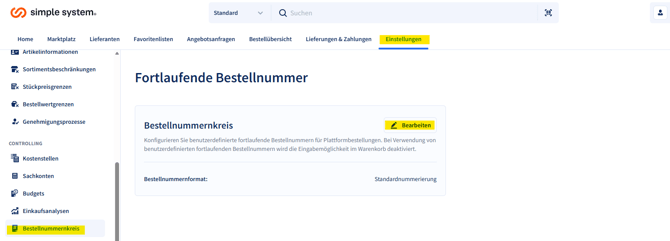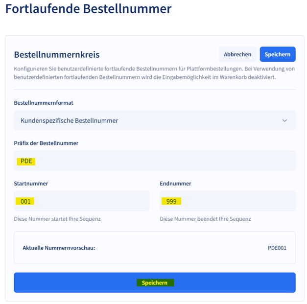 Mit dem Bestellnummernkreis legen Sie fest, wie Bestellnummern auf der Plattform vergeben werden. Dies ermöglicht eine klare Struktur und eine nahtlose Integration mit Ihrem ERP-System.