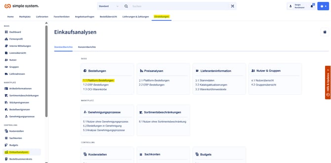 Gehen Sie dazu im System auf den Reiter „Einkaufsanalysen“. Dort stehen Ihnen alle relevanten Daten zur Verfügung.